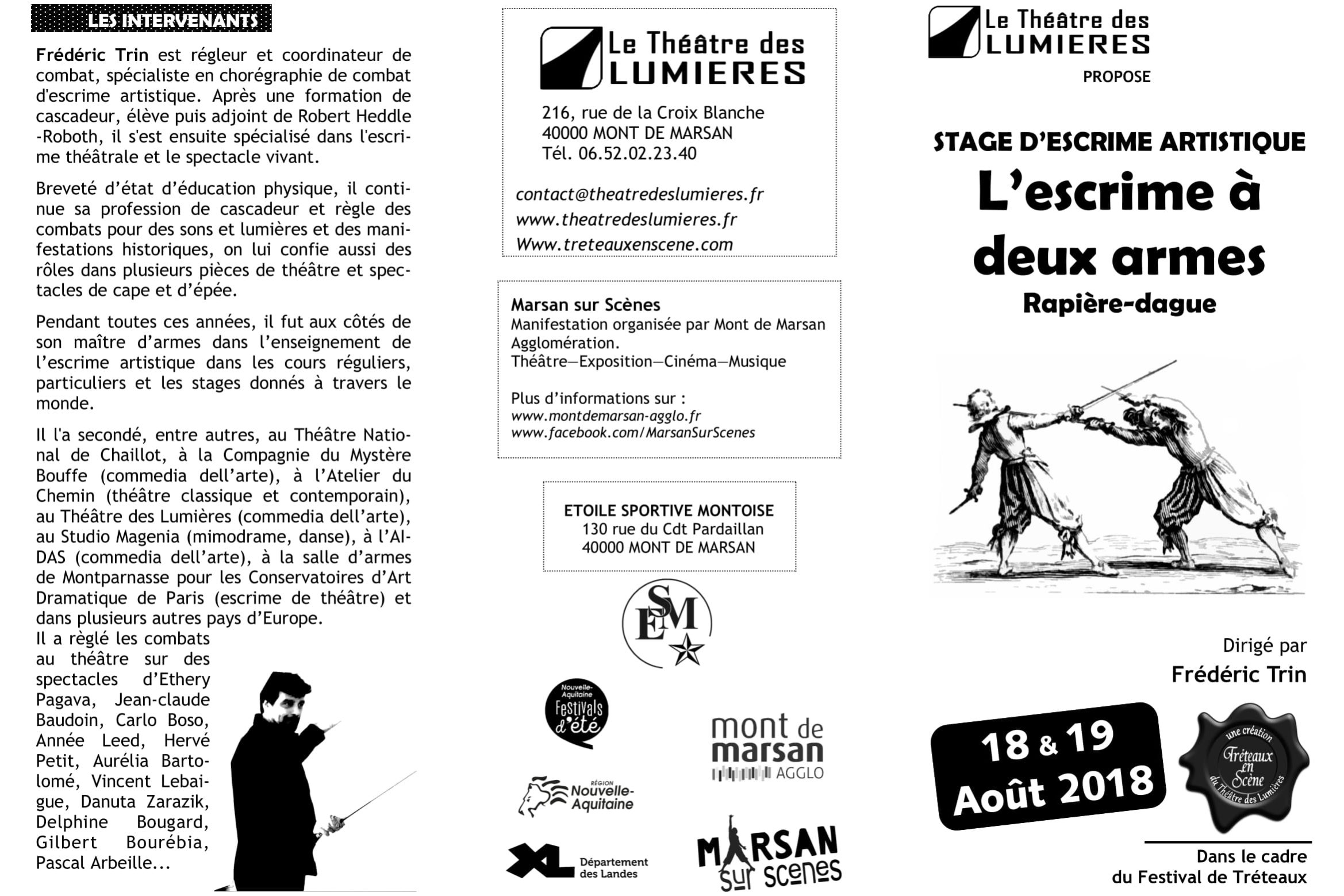 Il sera dirigé par Frédéric Trin, chorégraphe de combat, spécialiste en chorégraphie de combat d’escrime artistique, il se déroulera à la salle d’armes de l’ESM à Mont de Marsan.